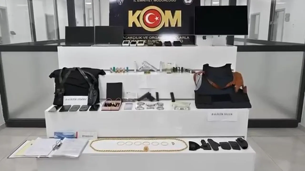 Şüphelilerin ikamet, iş yeri ve araçlarında yapılan aramalarda; 2 adet tabanca, 2 adet tüfek, 2 adet balistik yelek, 91 adet fişek, 8 adet tabanca kılıfı, 2 adet kelepçe, suçtan elde edildiği değerlendirilen ziynet eşyası ve döviz, çok sayıda çek, 7 adet POS cihazı, 11 adet uyuşturucu-uyarıcı hap ve çok sayıda dijital materyal ele geçirildi.