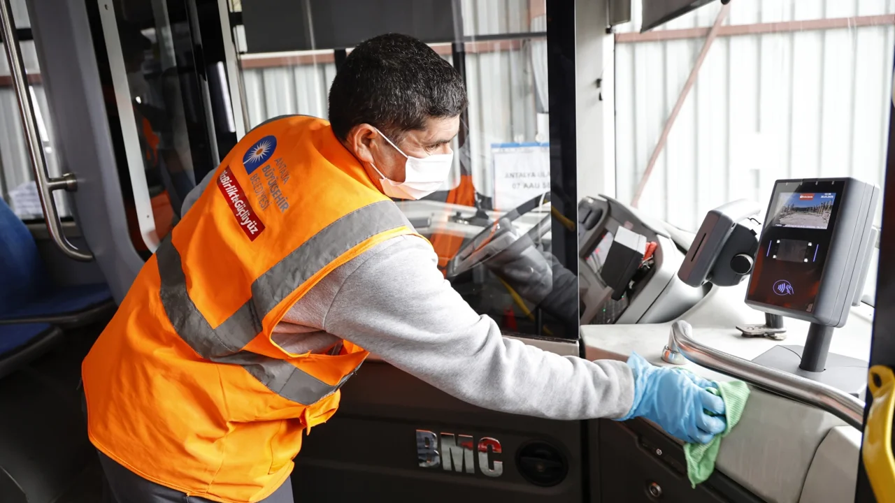 Antalya Büyükşehir Belediyesi, Antalyalılara daha iyi, temiz ve hijyenik bir ulaşım hizmeti sunmak için toplu ulaşım araçlarını titizlikle temizleyerek, seferlere hazırlıyor.