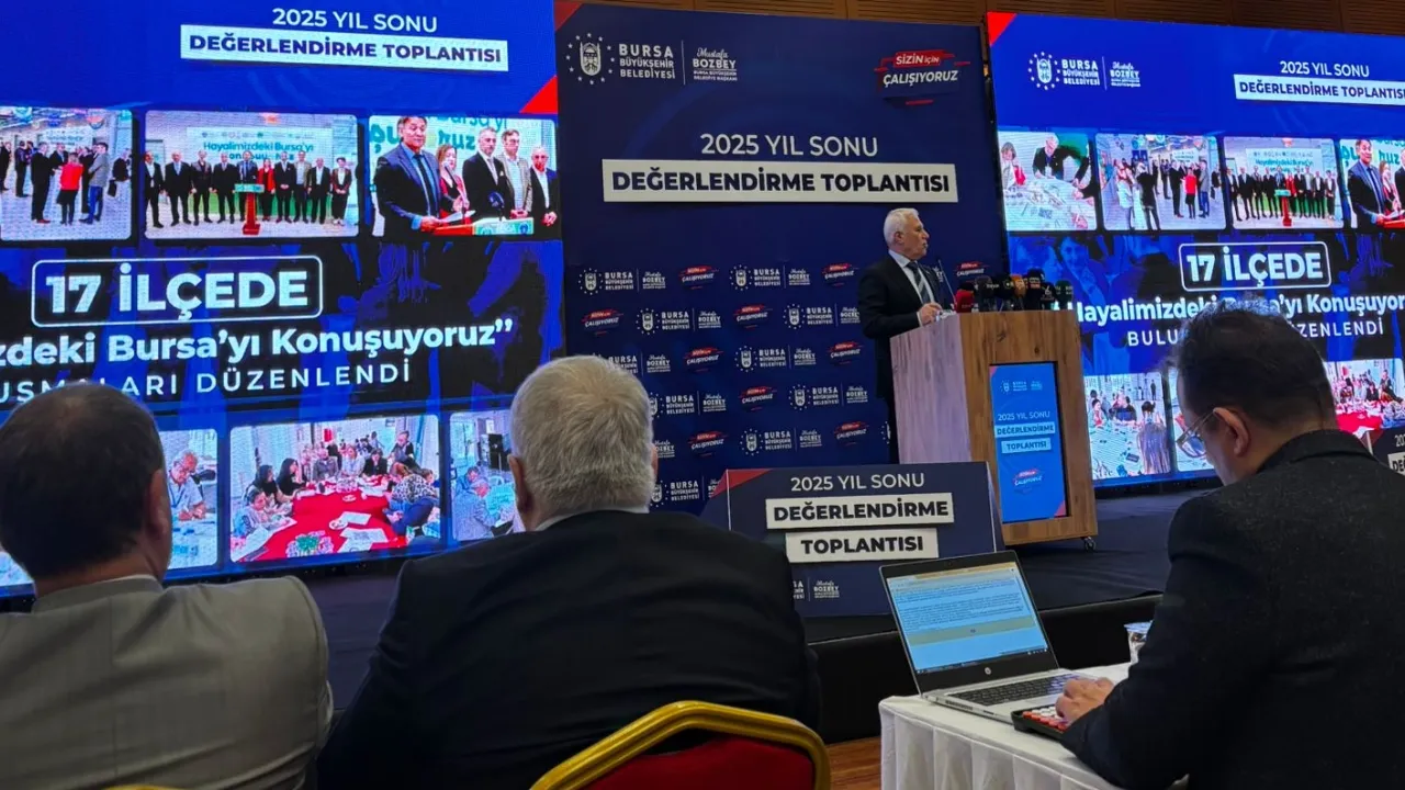 Bursa Büyükşehir Belediye Başkanı Mustafa Bozbey 2025 Yıl Sonu Değerlendirme Toplantısı'nda belediyenin hayata geçirdiği projeleri ve kentin geleceği için yapılan çalışmaları paylaştı. Şeffaflık ve hesap verebilirlik vurgusu yapan Başkan Bozbey, şehrin sorunlarına çözüm üreten projeler anlattı.