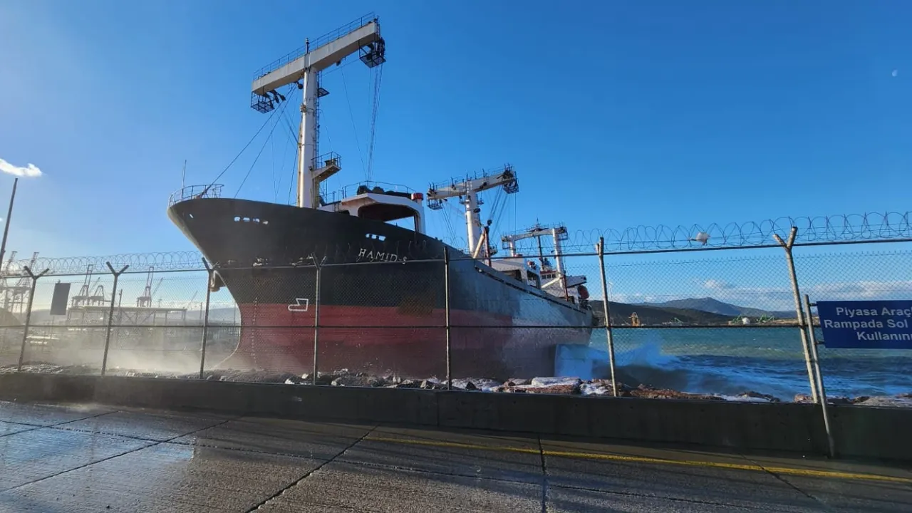 Denizcilik Genel Müdürlüğü, Ege Gübre Limanı'ndan olumsuz hava koşulları nedeniyle acil kalkış yapan HAMID-S adlı kuruyük gemisinin karaya oturduğunu, gemideki 18 denizcinin güvenli şekilde tahliye edildiğini açıkladı.
