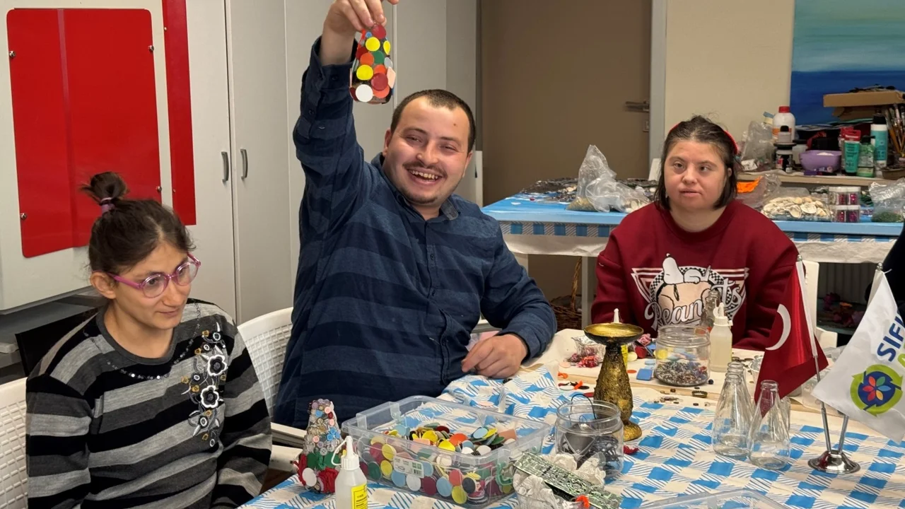 Gonca Engelsiz Yaşam Merkezi'nde eğitim gören öğrencilerle birlikte düzenlenen sanat atölyesinde cam atıkların yeniden değerlendirilmesi üzerine uygulamalı çalışmalar yapıldı.