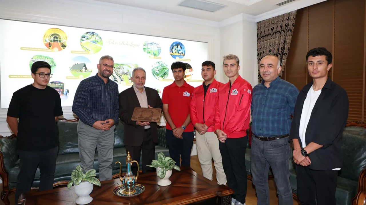 Kayseri Talas Belediyesi Espor ve İnovasyon Merkezi’nde eğitim alan Hürriyet Mesleki ve Teknik Anadolu Lisesi öğrencileri, TEKNOFEST Kıbrıs’ta elde ettikleri başarıları paylaşmak ve teşekkürlerini iletmek üzere Talas Belediye Başkanı Mustafa Yalçın’ı makamında ziyaret etti.